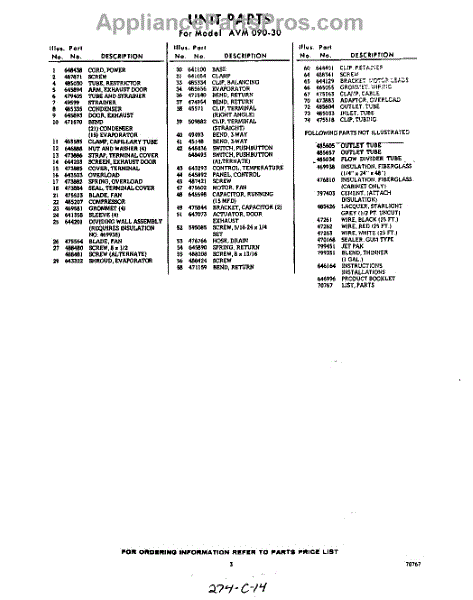 Parts for Whirlpool AVM09030: 03 - Section Parts
