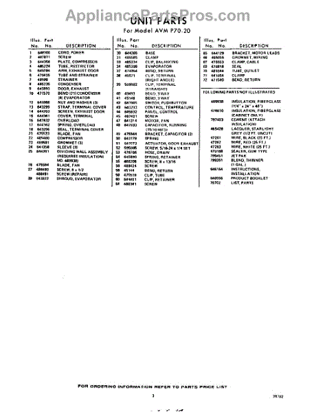 Parts for Whirlpool AVMP7020: 03 - Section Parts
