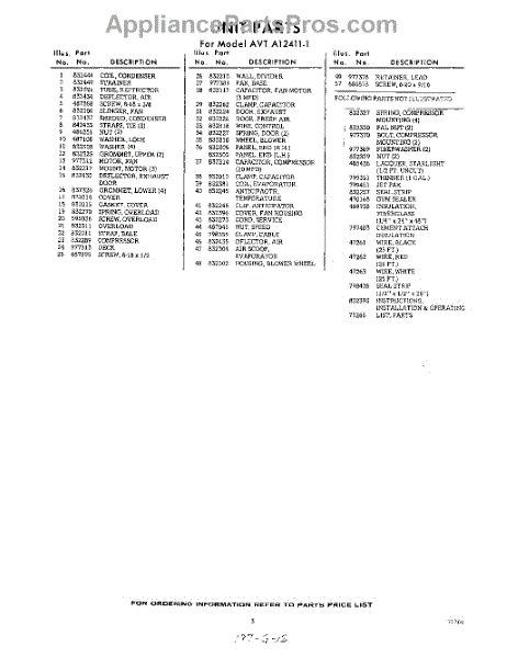 Parts for Whirlpool AVTA124111: 03 - Section Parts