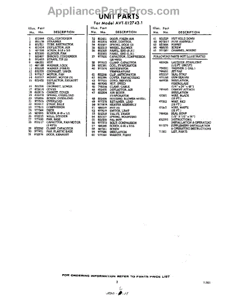 Parts for Whirlpool AVTE127431: 03 - Section Parts