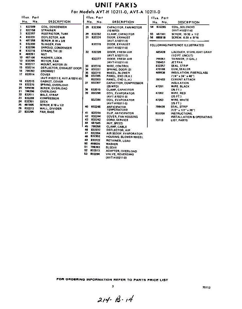 Parts for Whirlpool AVTH102110: 03 - Section Parts