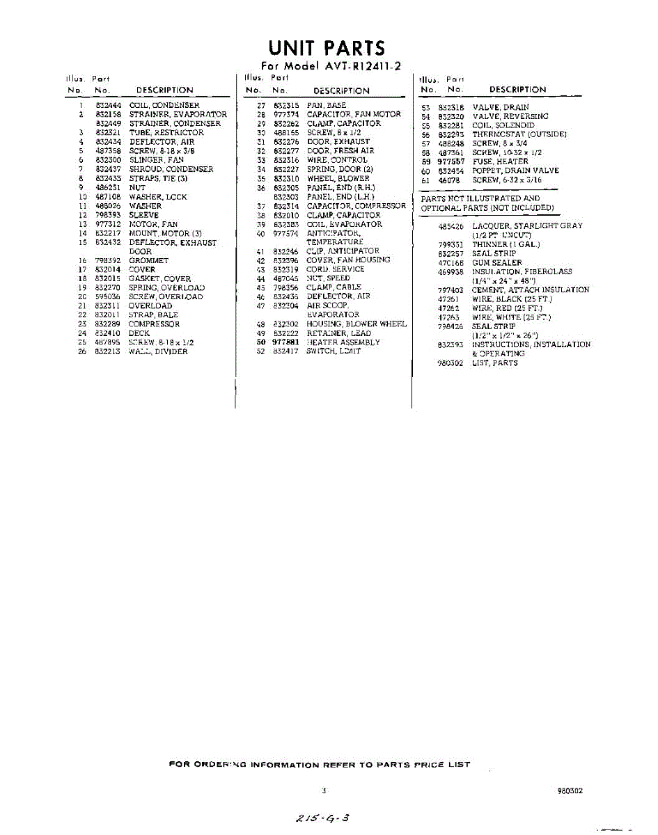 Parts for Whirlpool AVTR124112: 03 - Section Parts
