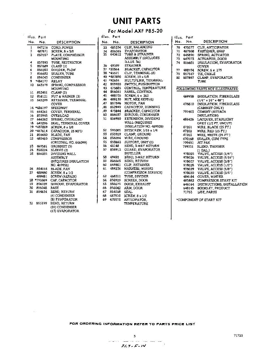 Parts for AXFP8520