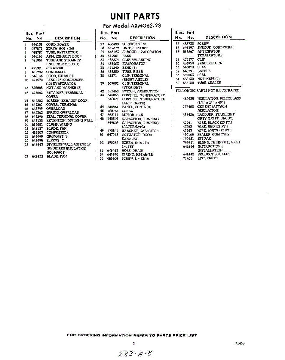 Parts for Whirlpool AXM06223: 03 - Section Parts
