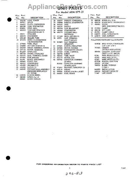 Parts for Whirlpool AXM07921: 03 - Section Parts