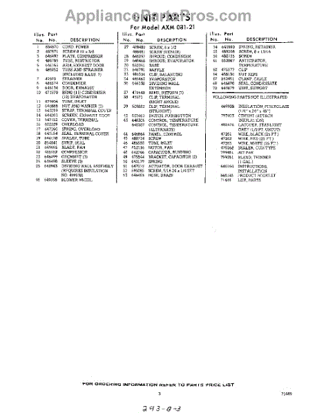 Parts for Whirlpool AXM08121: 03 - Section Parts