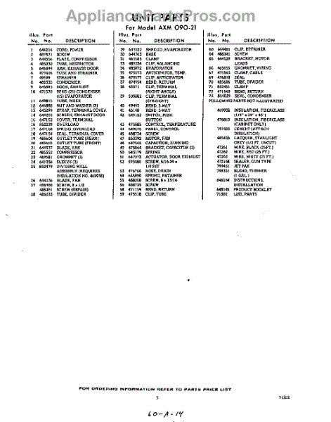 Parts for Whirlpool AXM09021: 03 - Section Parts
