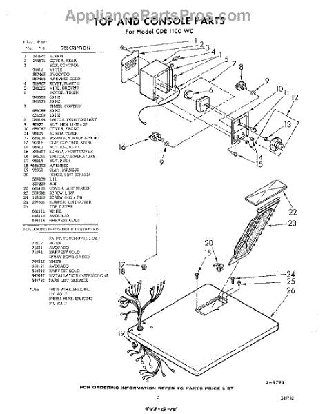 Parts for Whirlpool CDE1100W0: 03 - Section Parts
