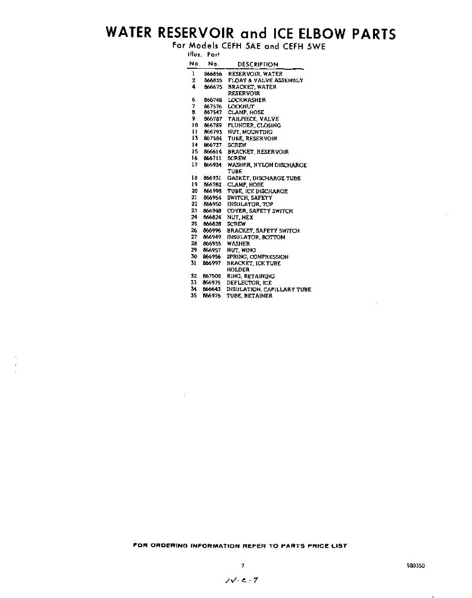 Parts for CEFH5AE