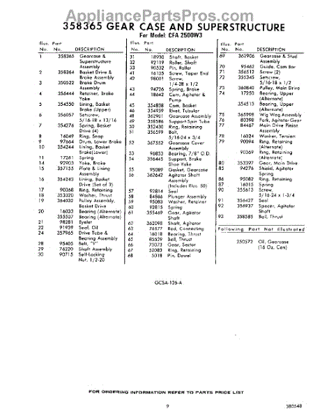 Parts for Whirlpool CFA2500W3: 09 - Section Parts