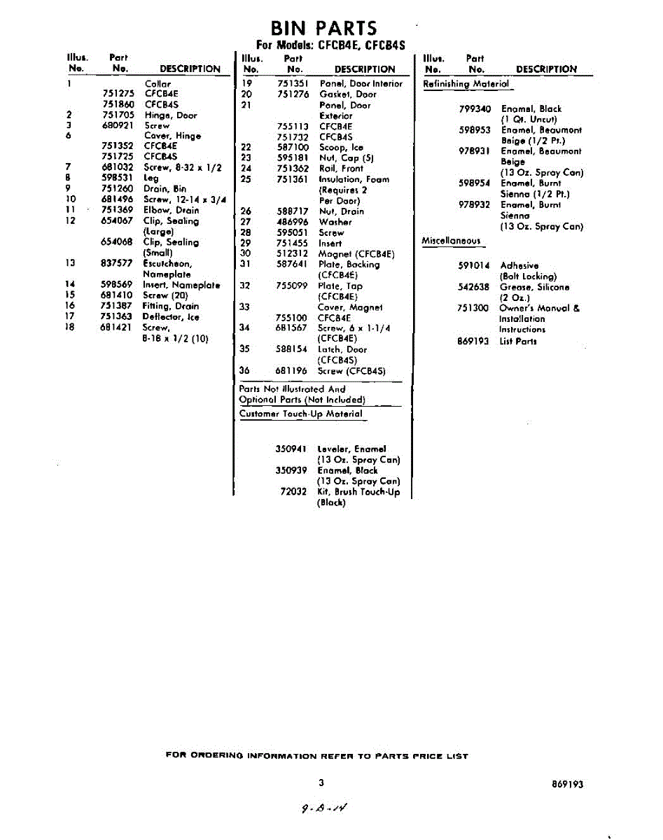 Parts for Whirlpool CFCB4S: 03 - Section Parts