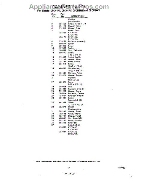 Parts for Whirlpool CFCH4WE: 11 - Section Parts