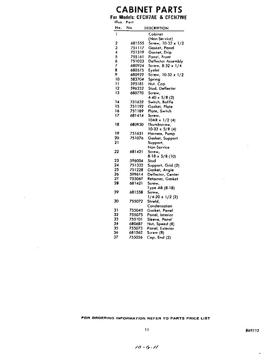Parts for Whirlpool CFCH7AE: 11 - Section Parts