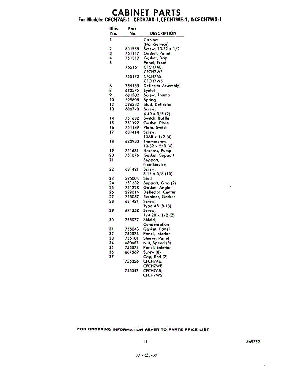 Parts for Whirlpool CFCH7AS1: 11 - Section Parts