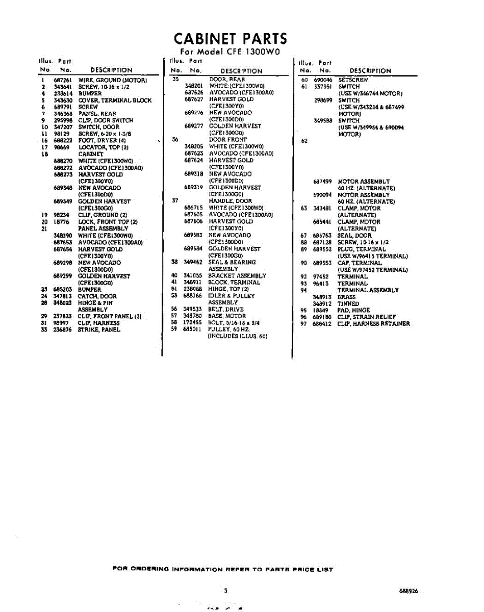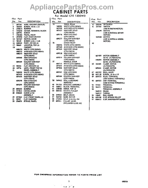 Parts for Whirlpool CFE1300W0: 03 - Section Parts