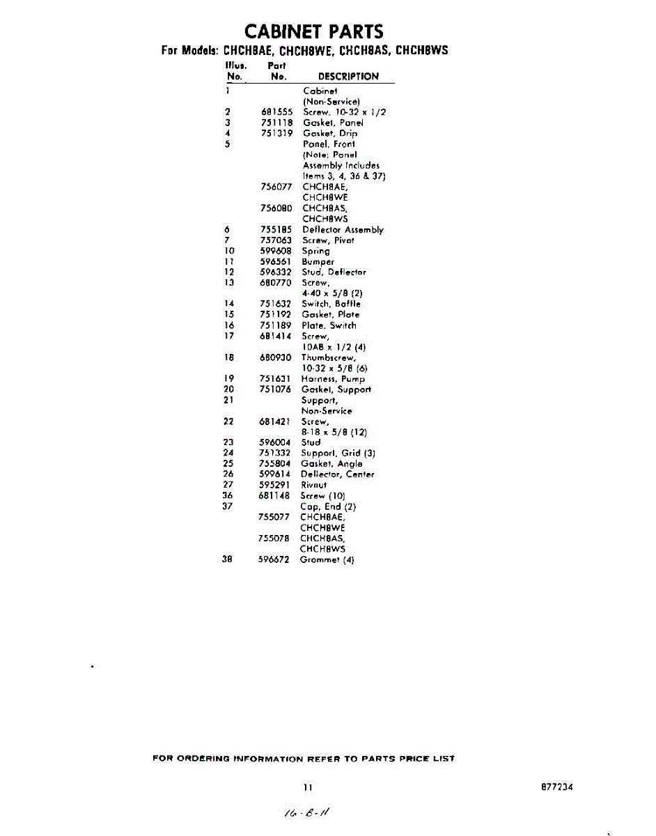 Parts for Whirlpool CHCH8WS: 11 - Section Parts