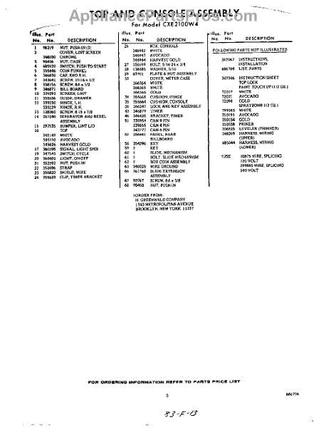 Parts for Whirlpool CXE2100W4: 03 - Section Parts