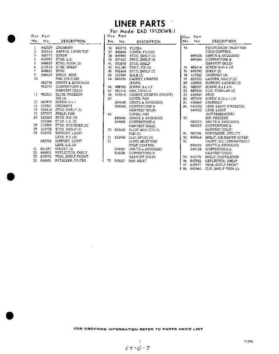 Parts for EAD191ZKWR1