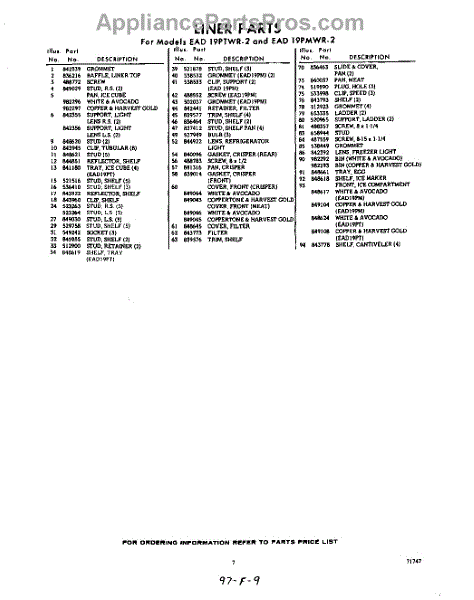 Parts for EAD19PMWR2