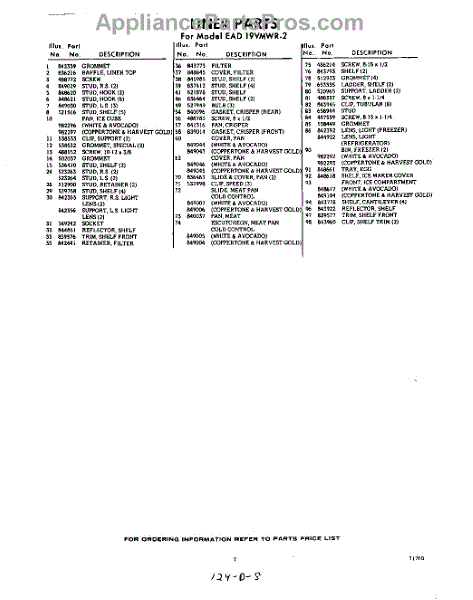 Parts for EAD19VMWR2