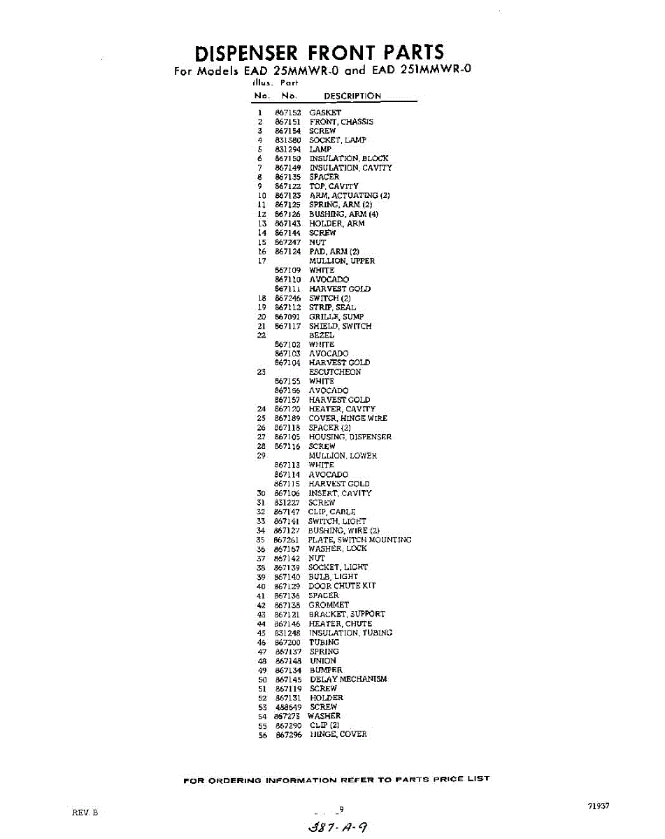Parts for EAD251MMWR0