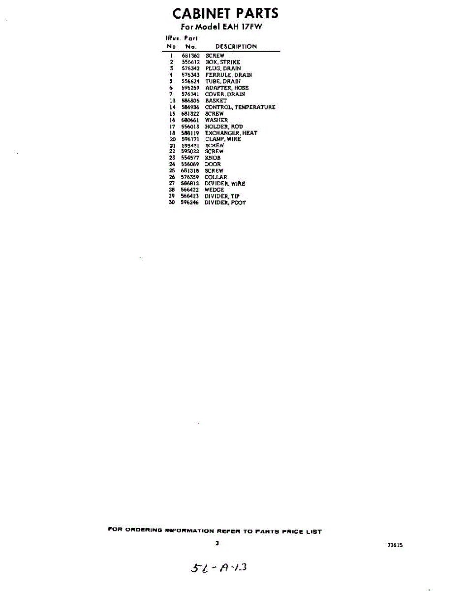 Parts for EAH17FW0