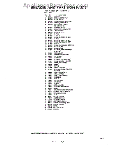 Parts for EAT171PTW2