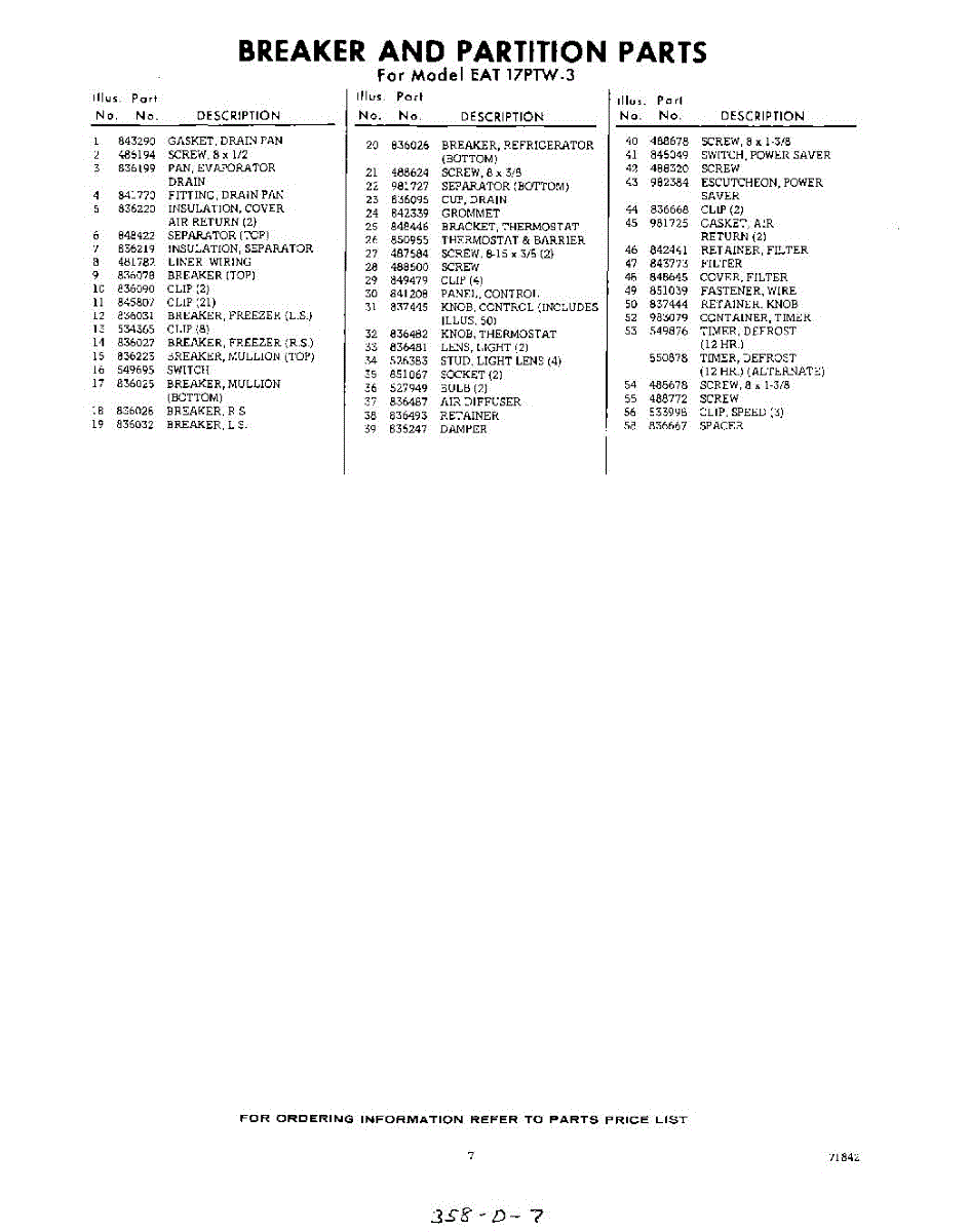 Parts for EAT17PTW3