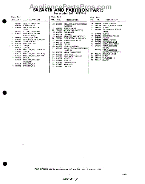 Parts for EAT17PTW4