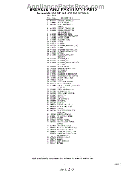 Parts for EAT19PTW6