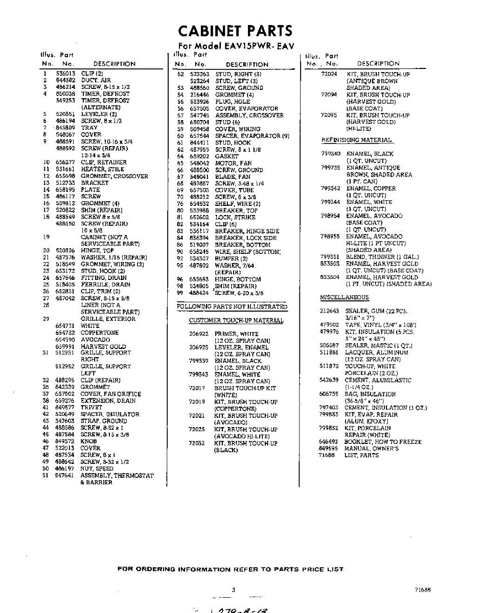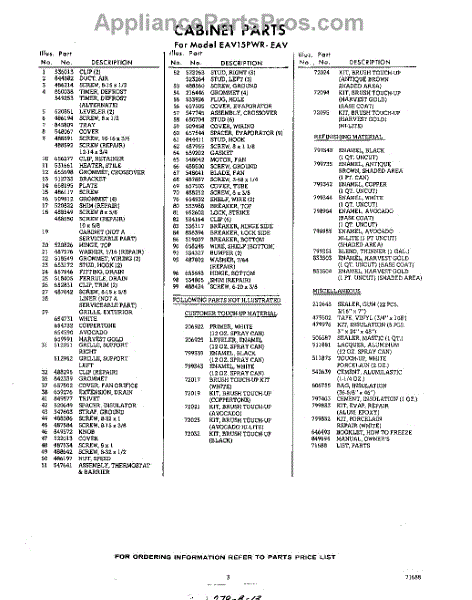 Parts for Whirlpool EAV15PWR0: 03 - Section Parts