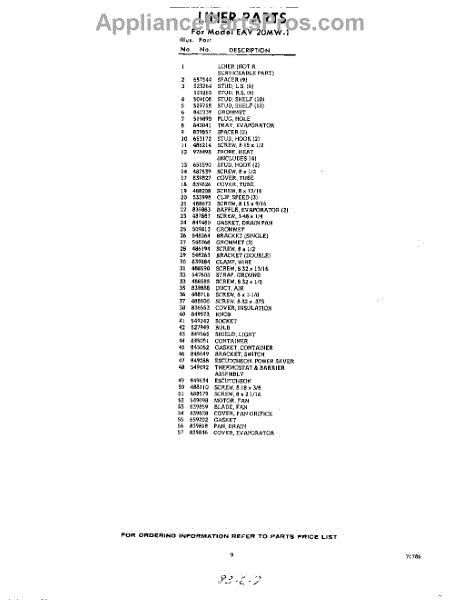 Parts for Whirlpool EAV20MW1: 09 - Section Parts