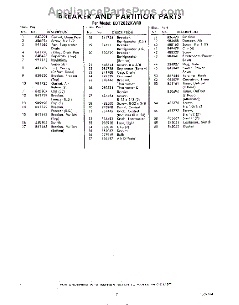 Parts for EDT202ZKWR0