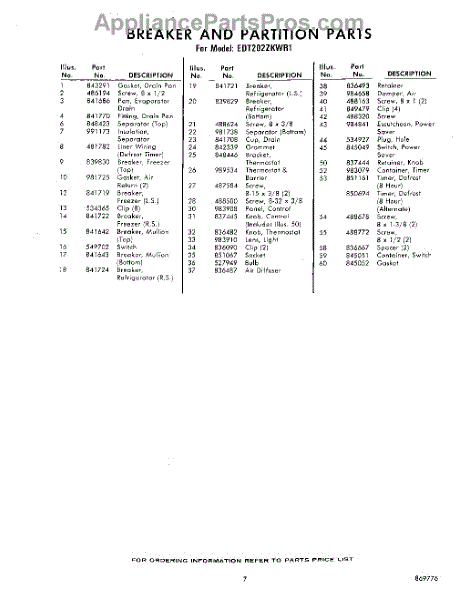 Parts for EDT202ZKWR1