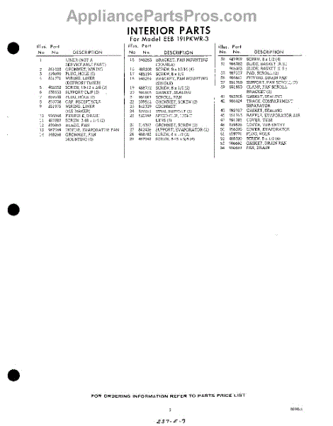 Parts for EEB191PKWR3