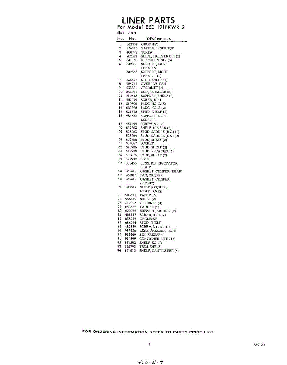 Parts for EED191PKWR2