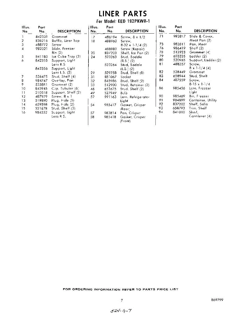 Parts for Whirlpool EED192PKWR1: 07 - Section Parts