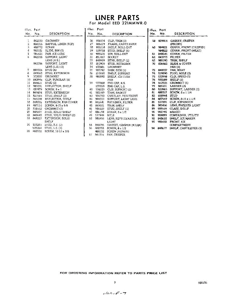 Parts for Whirlpool EED221MMWR0: 07 - Section Parts