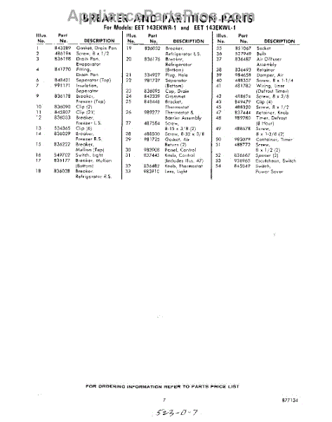 Parts for Whirlpool EET143EKWR1: 07 - Section Parts