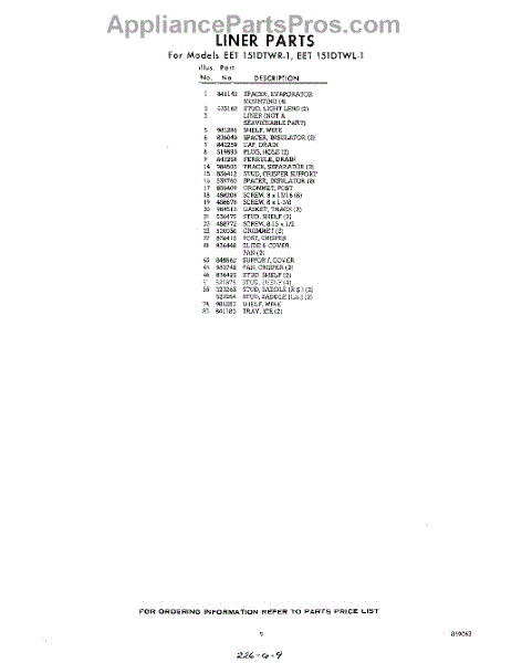 Parts for EET151DTWR1