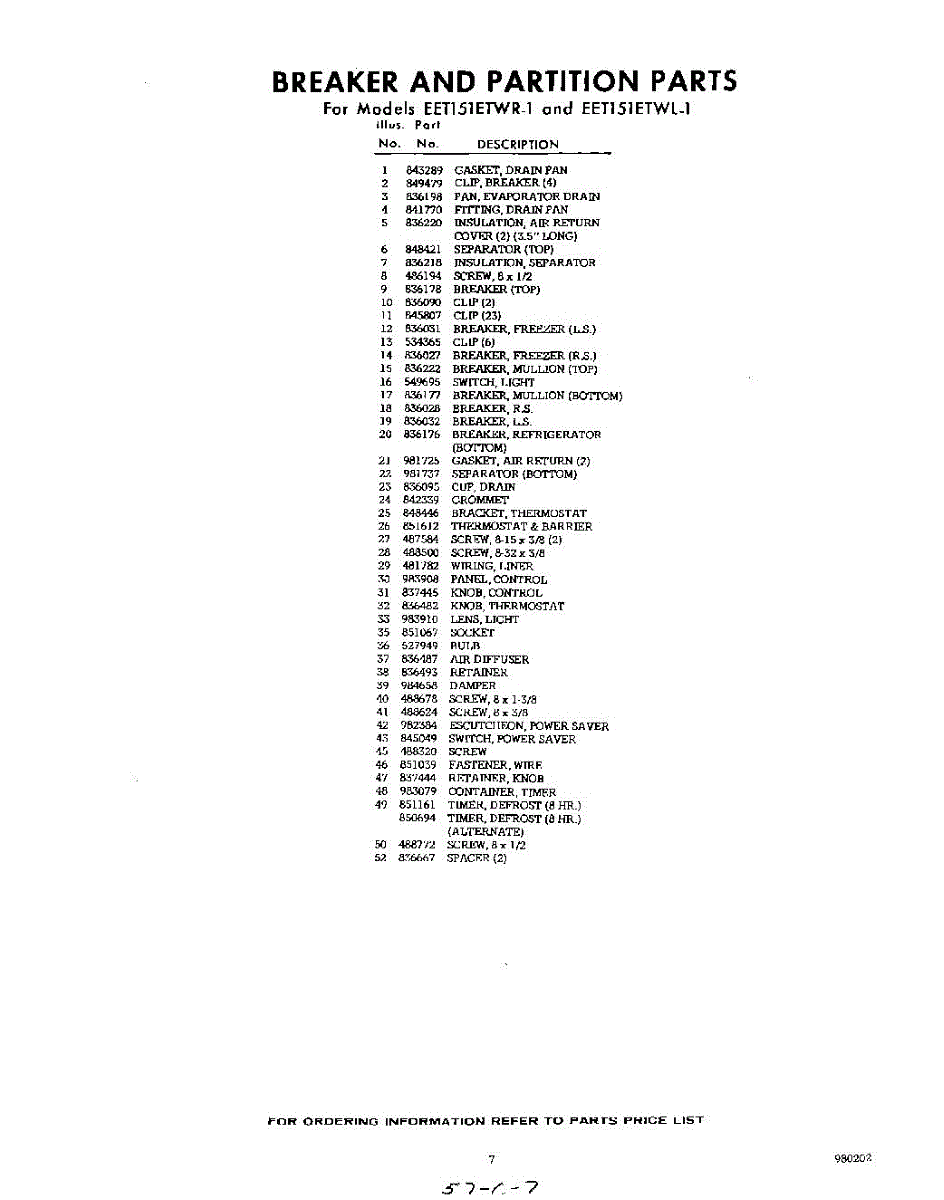 Parts for EET151ETWR1