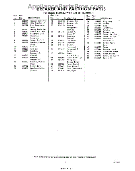 Parts for Whirlpool EET153JTWR1: 07 - Section Parts