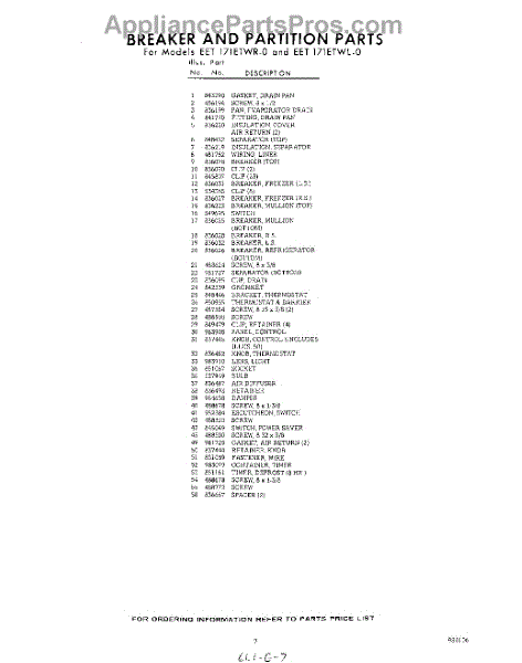 Parts for EET171ETWR0
