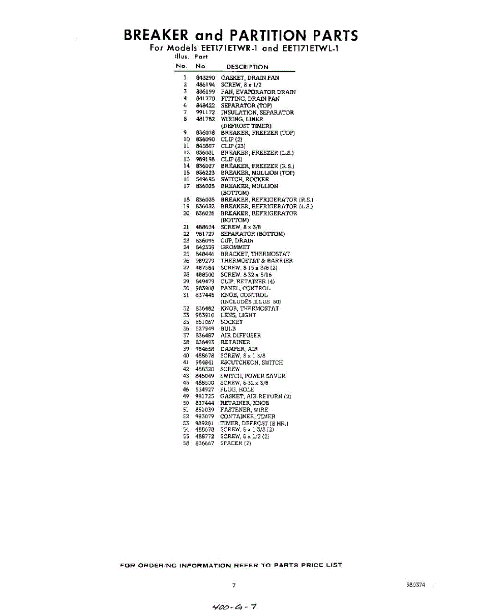 Parts for EET171ETWR1