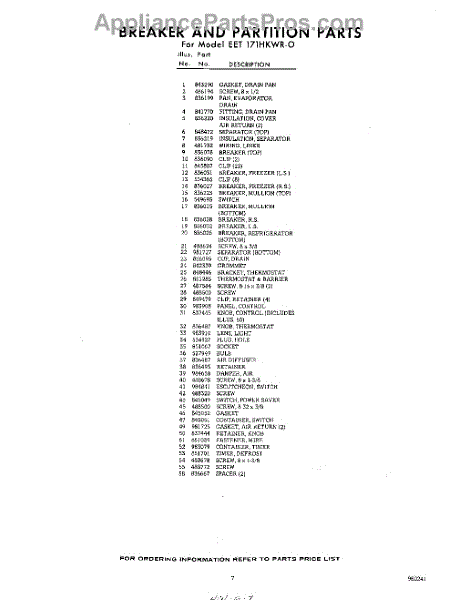 Parts for EET171HKWR0