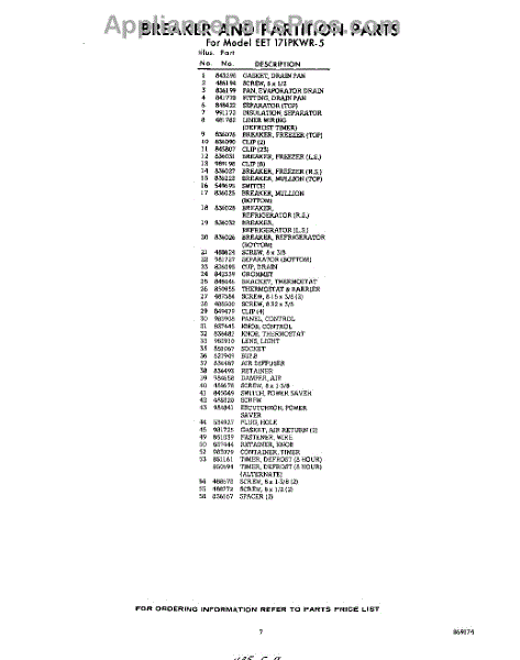 Parts for EET171PKWR5