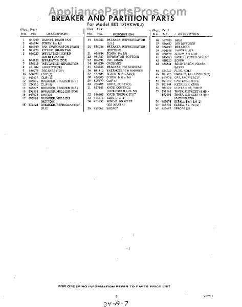 Parts for EET171VKWR0
