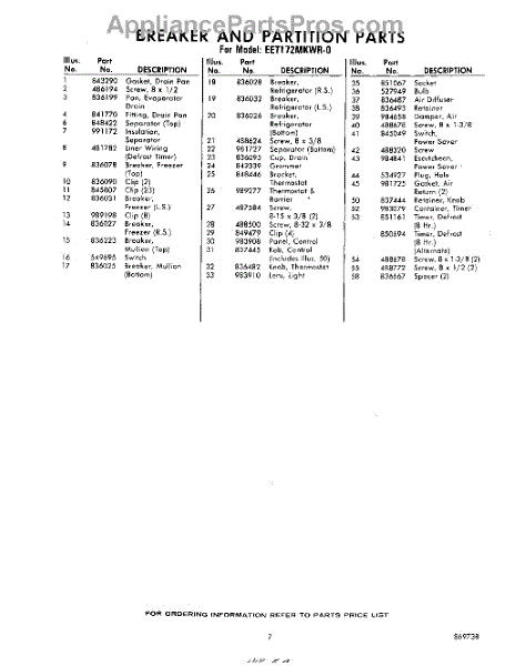 Parts for Whirlpool EET172MKWR0: 07 - Section Parts