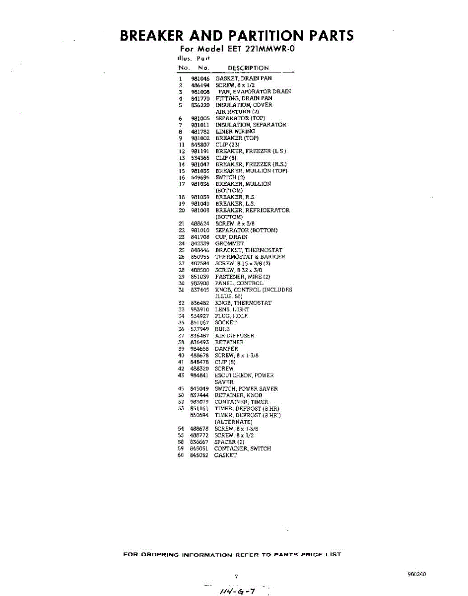 Parts for Whirlpool EET221MMWR0: 07 - Section Parts