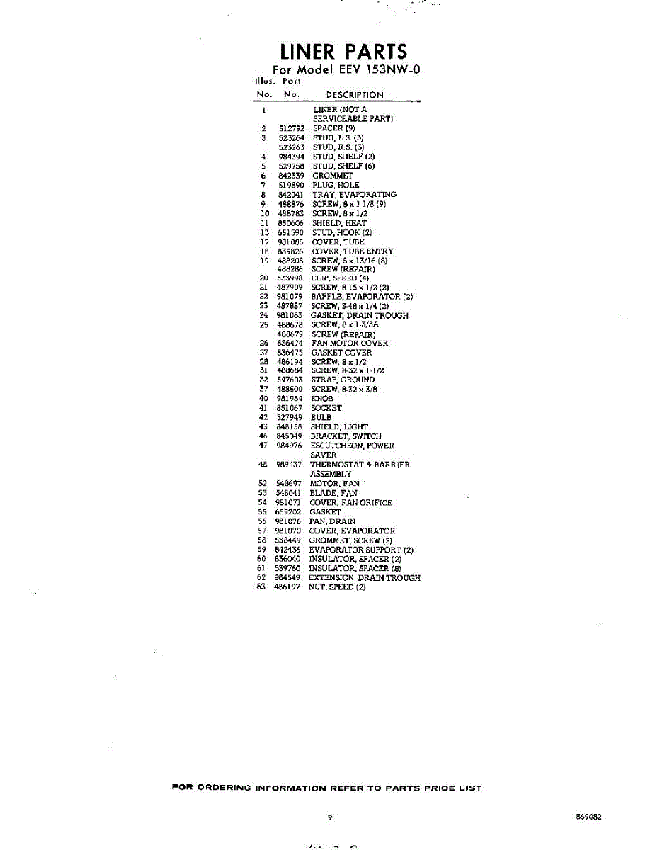 Parts for Whirlpool EEV153NW0: 09 - Section Parts